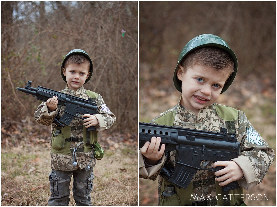 Currently, he’s obsessed with the Army. He goes through his phases like all kids…we’ve been through the Home Alone phase – where he wanted to watch the movie literally every day, the Sandlot movie phase, the (very long) Spider-Man phase – he still wears his costume from time to time, the bull riding phase, and now, the army phase. He specifically requested Army birthday party invitations and HAD to have his photos taken in his Army costume.